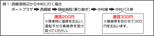 都万線・五箇線・中村線・布施線から循環線・隠岐高校線・隠岐水産高校線へ乗り継いでも、片道最大500円となります。